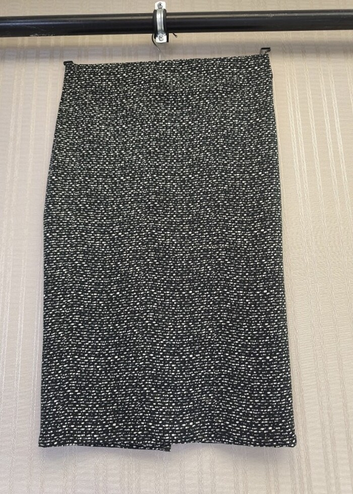 Penye siyah beyaz yırtmaçlı diz kapağının altında kalem etek alana hayırlı olsun