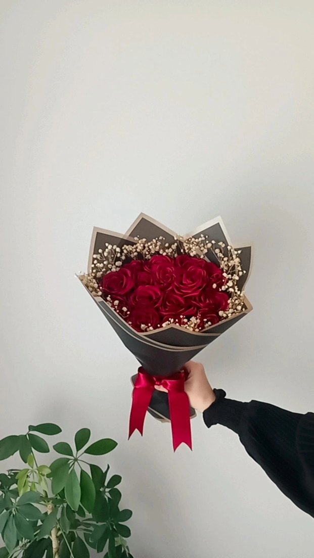 kalıcı solmayan bordo buket isteme çiçeği 12 li