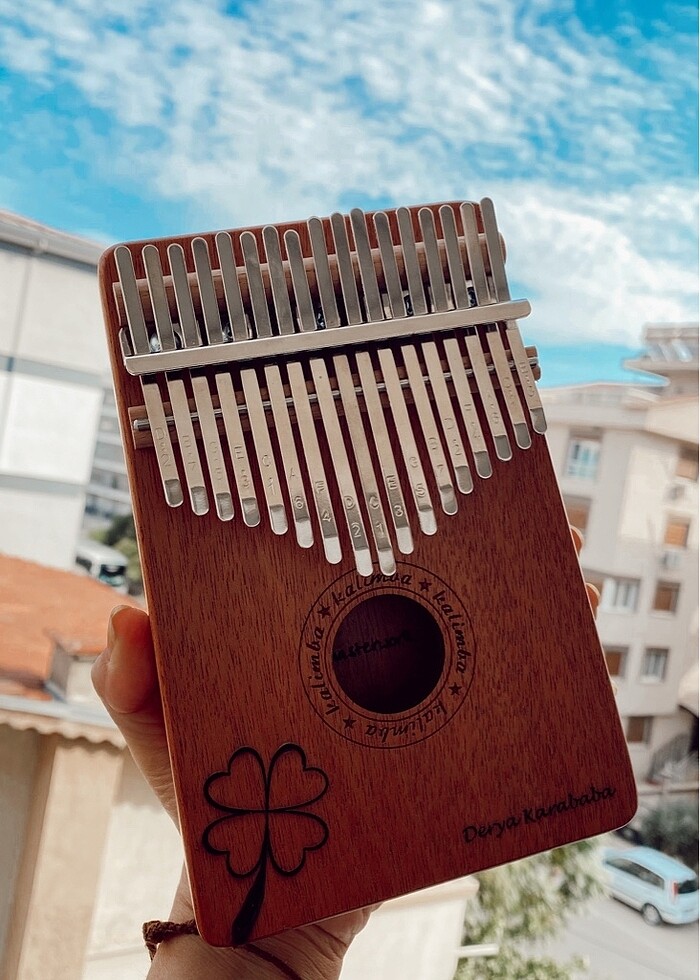 17 tuşlu Akortlanmış kalimba kadife kılıf akort çekici yapışkanlı nota kağıdı stickerlar silme bezi