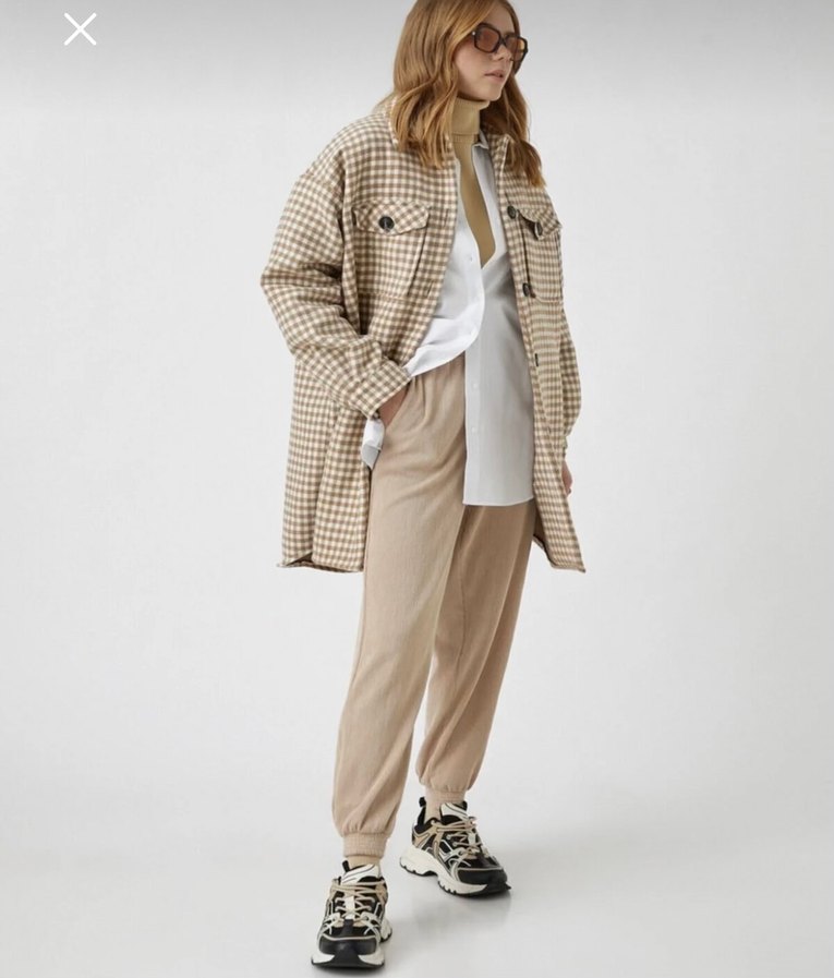 Baya kalın ceket olarak geçiyor fakat kaban olarakta kullanılır tok ağır bir kaşeye benzeyen bir kumaşı var. 42 beden fakat baya bol 44 bedene de olur 40 beden de salaş oversize sevenler için uygun olur diye düşünüyorum.