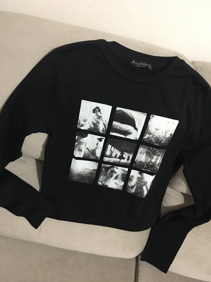 Adet Fiat’ın 6-8-9 no foto esnekliği ve yakın çekim var etiket oranı mevcut %80 koton Kalın esnekliği M bedene kadar uygun kısa bel hizası Pamuklu, uzun kollu, kısa kesim ve baskılı detaylı siyah sweatshirt. Salaş kesimi ve yuvarlak yakası ile sokak stiline uygun şık bir parça.etiket yok yeni