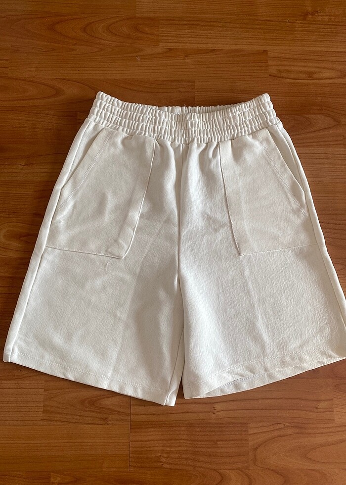 Ekru renk kalın penye kumaştan şort. Tertemiz