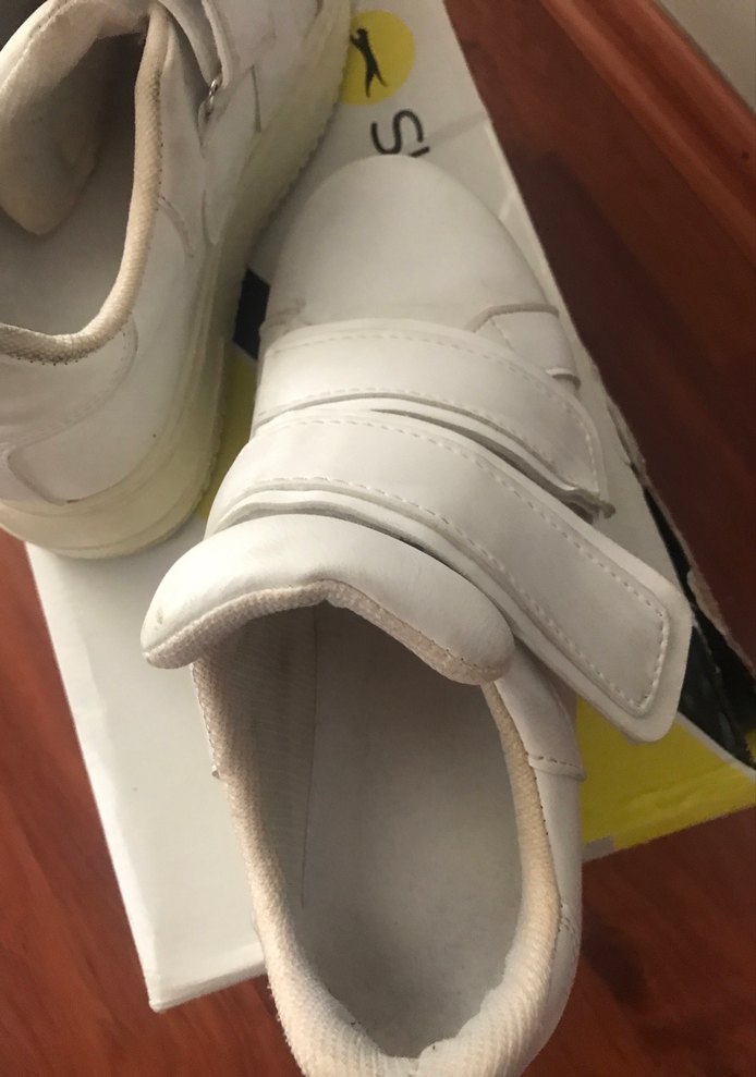 Beyaz Kalın taban ayakkabı yırtığı söküğü yok. Kullanıldı başka bir ayakkabı kutusu ile teslim. İADESİ YOKTUR ‼️