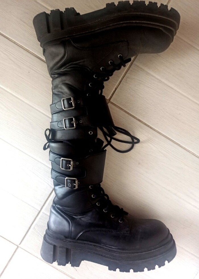 Ürün sayılı giiylmiştir ,kenarlarda kullanıma engel ollmayan ufak açılmalar var kolayca yapıştırılabilir ,kalın tabanlı boğazdan kelepçe ve tokalı iç yanlardan fermuarlı güzel bir modeldir ( iade yoktur )