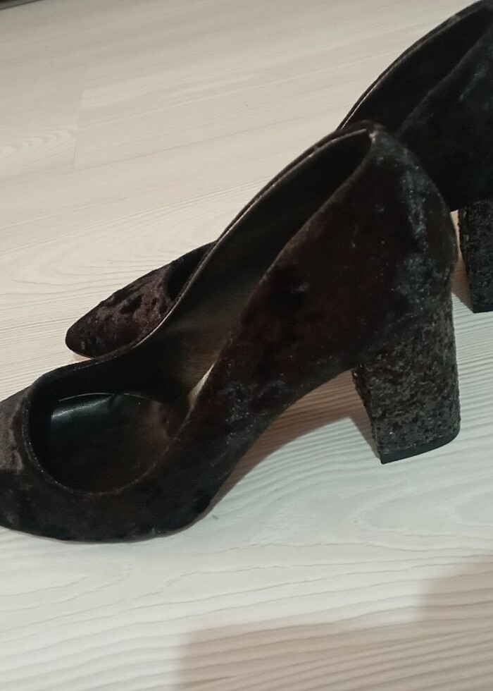 Ürün kadife kumaş topuk kısmı simlidir ürün topu 5-7 santim arasındadır 37 numaradır bir kez evde kullanılmıştır