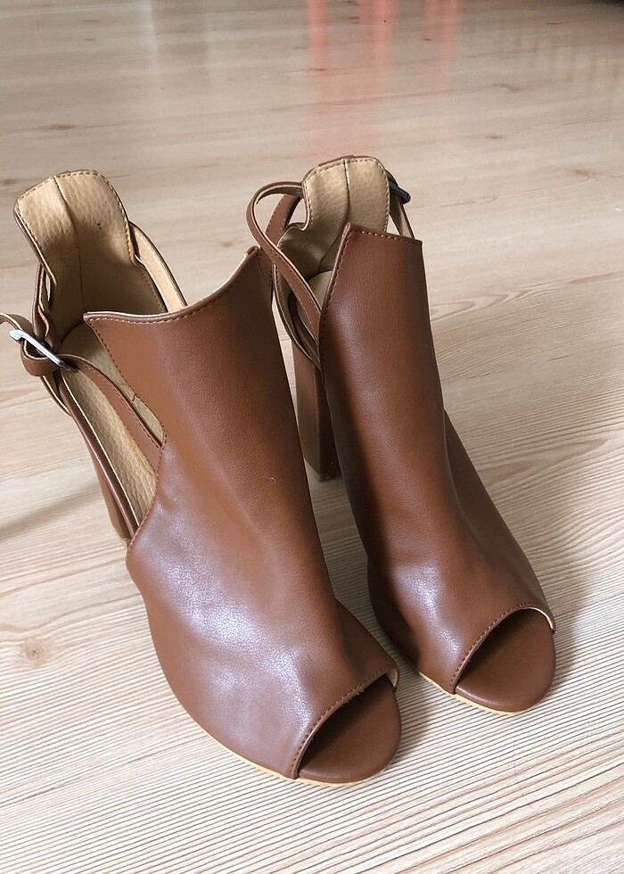 Kalın Topuk Ucu Açık Topuklu Ayakkabı