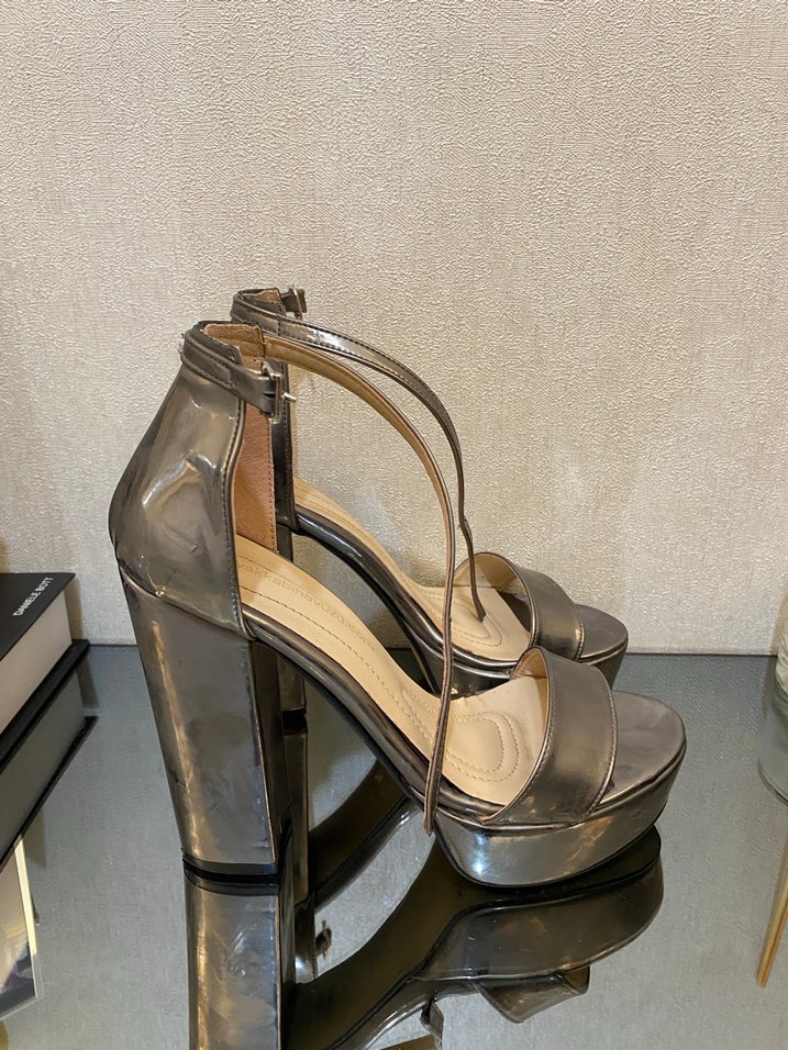 Kalın topuklu gümüş ayakkabı