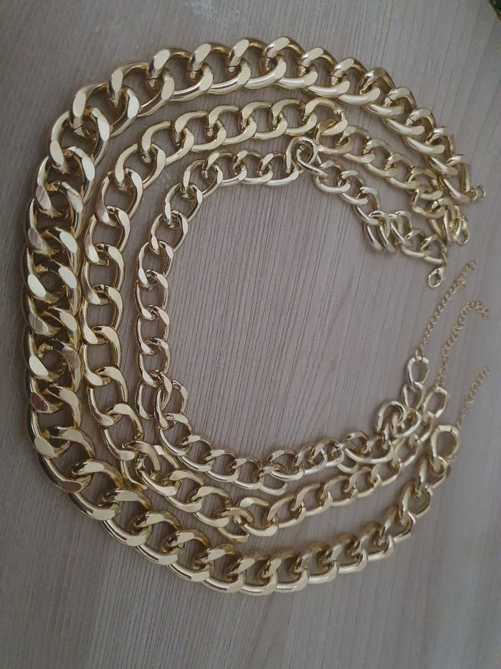 Alınıp kullanılmayanlarımdan, kalın bijuteri gold zincir kolye seti[3]. görünüşünün aksine oldukça hafiftir. Günlük kullanıma uygundur. ✨ (Marka temsili)