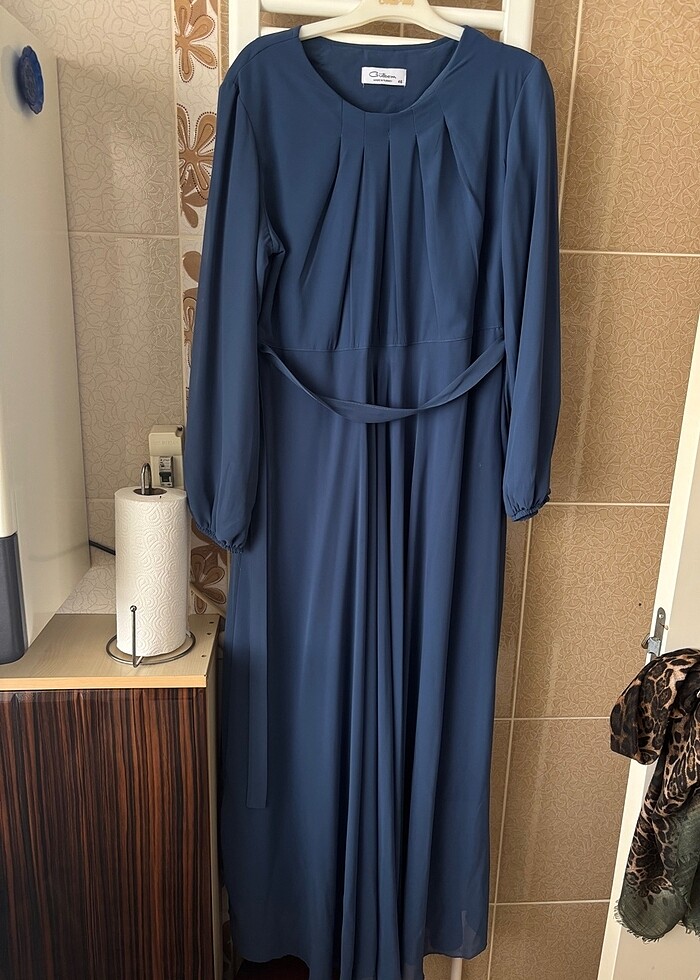 Ürünün hiçbir deformesi yoktur. 46 beden mavi bir elbisedir.