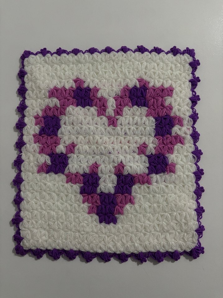Mor kalp desenli, yumuşak dokulu beyaz zeminli banyo süngeri
