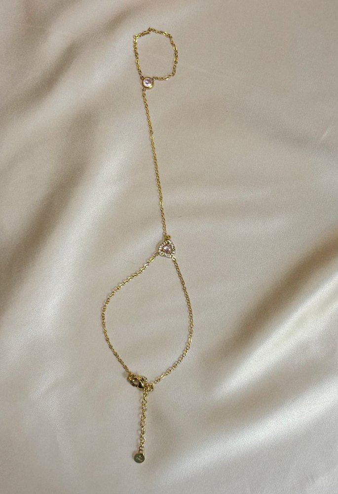 Minimalist tarzda, kalp desenli ve zincir detaylı altın renkli kadın el zinciri, günlük bohem stil için uygun.