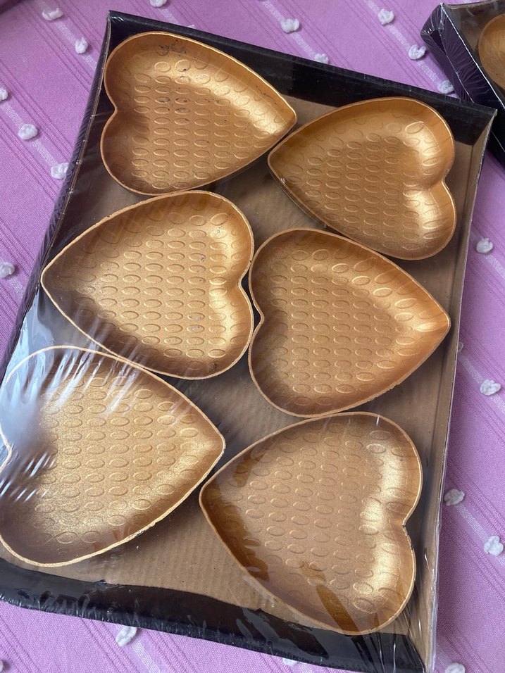 Kalp Desenli Parlak Altın Kalp Tabak Seti