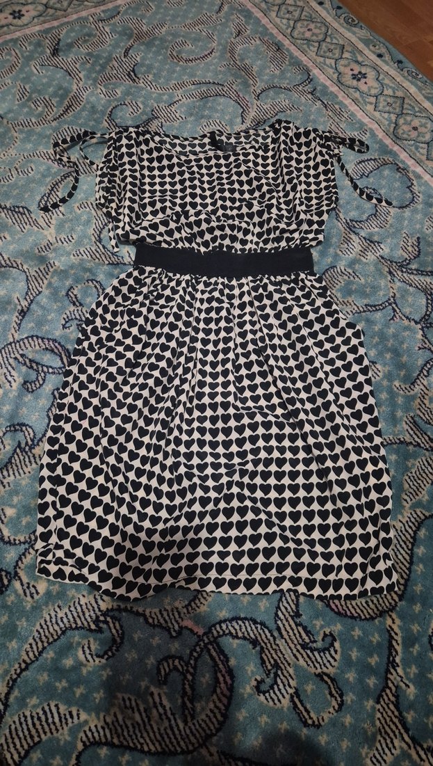 Bu siyah mini elbise, Kalp desenli ve beli lastikli, rahat günlük kullanım için uygundur. ❤️