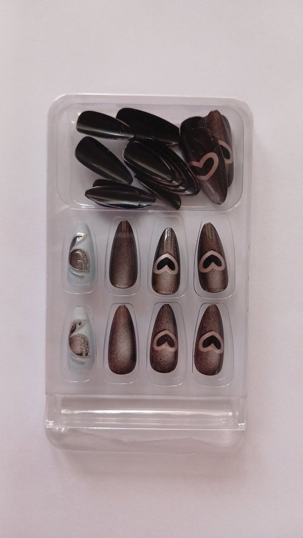 kalp desenli parlak tırnak süsleri, şık bir görünüm sağlar. 24'lü 3D Kelebek Kedi Gözü takma tırnak