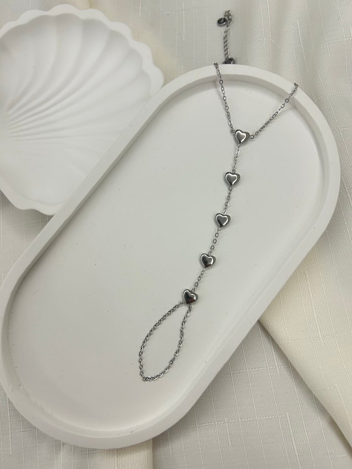Kalp Desenli Zincir Detaylı Kadın El Zinciri