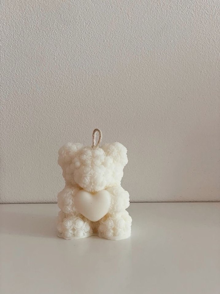 Kalp Detaylı Ayıcık Şeklinde Beyaz Mum