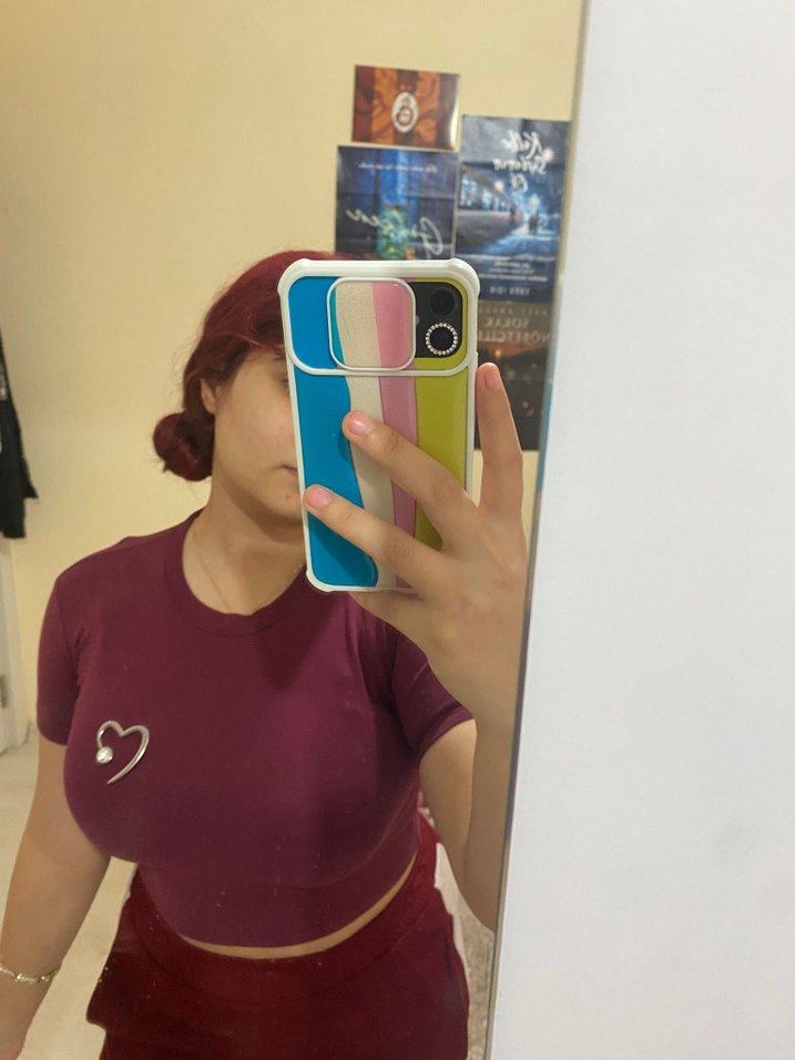 kalp detaylı bordo crop