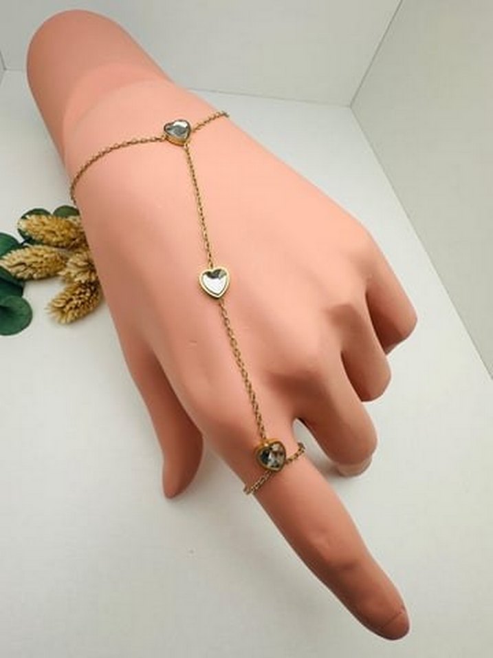 Altın renkli, kalp figürlü detaylara sahip ince zincirli el zinciri. Düğün ve bohem tarzlar için uygun, hafif yılan deseni ile retro bir dokunuş sunar. ✨ Ürünlerimiz 316L Çeliktir. Günlük kullanıma uygundur Anti alerjiktir. alışverişlerde kargolama süremiz ortalama 1-3 iş günüdür. Gönderimlerimiz ile yapılmaktadır