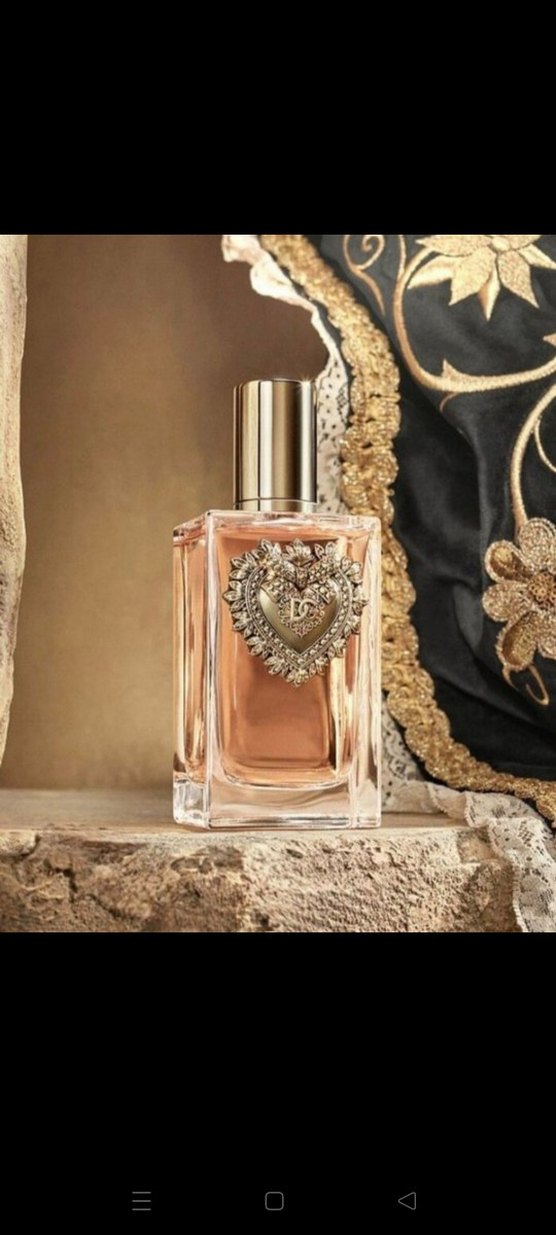 Dolce&Gabbana Devotion kadın parfümü, altın kalp detayı ve kapağı olan şeffaf şişede, İtalya yapımı, Eau de Parfum kokudur.
