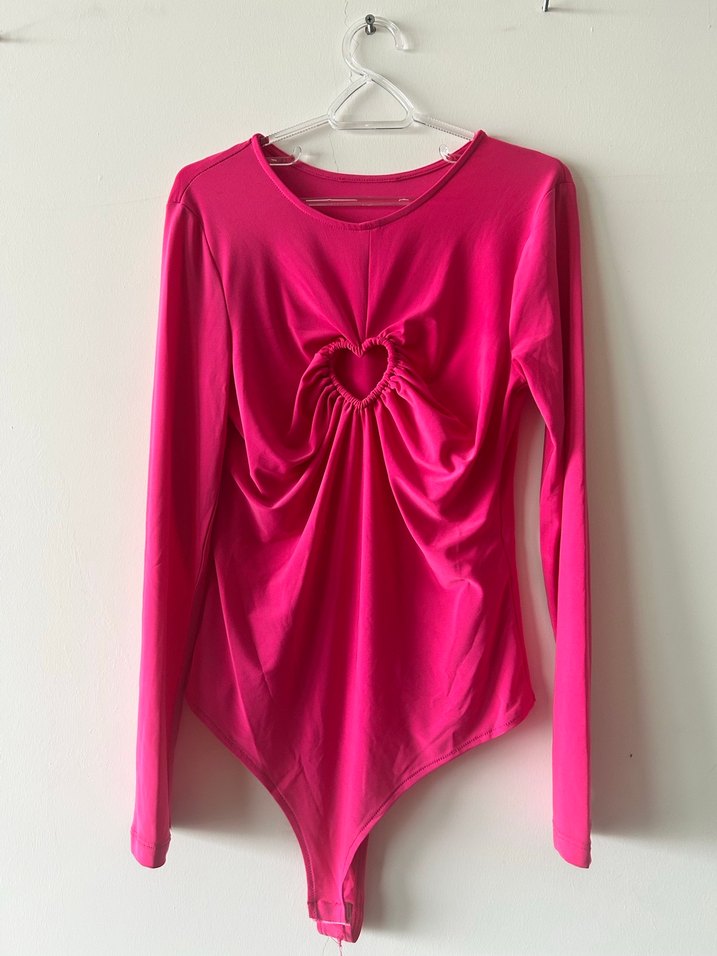 Pembe, uzun kollu , ön kısmında kalp şeklinde kesim ve drapeli detaylı, çıtçıtlı bluz. Hiç giyilmedi ürün