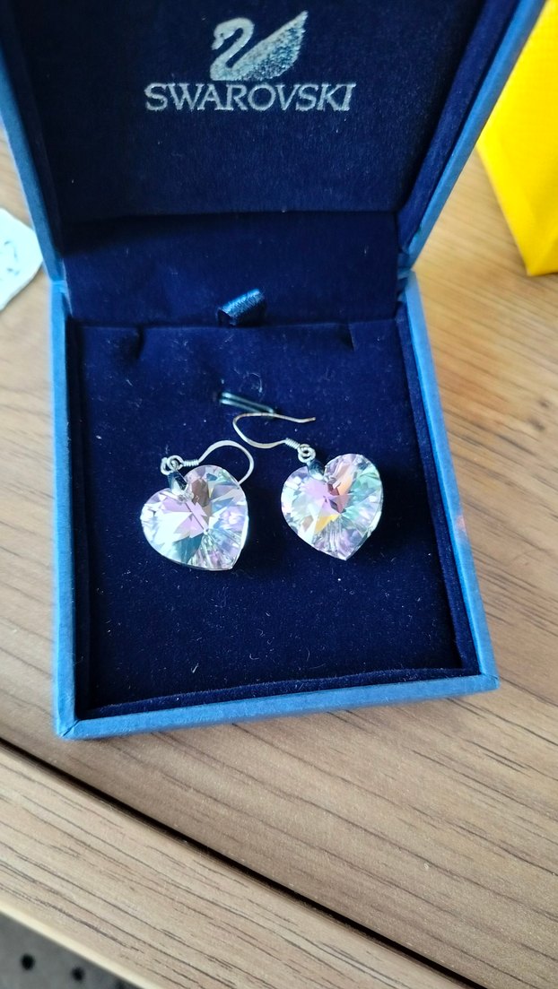 Kalp şeklinde Swarovski küpe. Yurt dışından hediye geldi. Hiç kullanılmadı