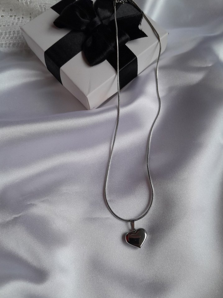 İnce zincir üzerinde şık gri kalp uçlu minimalist gotik kadın kolye, cesur tarz için uygun. Ürün celiktir hediye kutusunda gonderilir