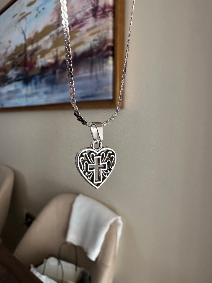 Kalp Motif Haç Kolye