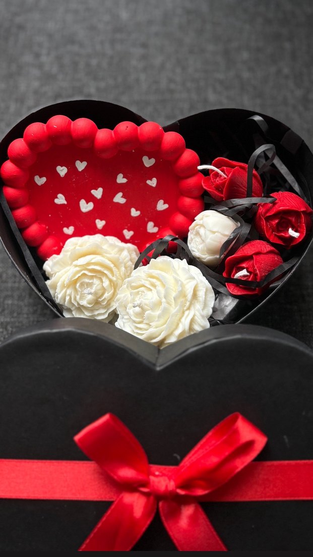 Kalp Şeklinde Hediye Kutusu ve Beyaz Çiçekler