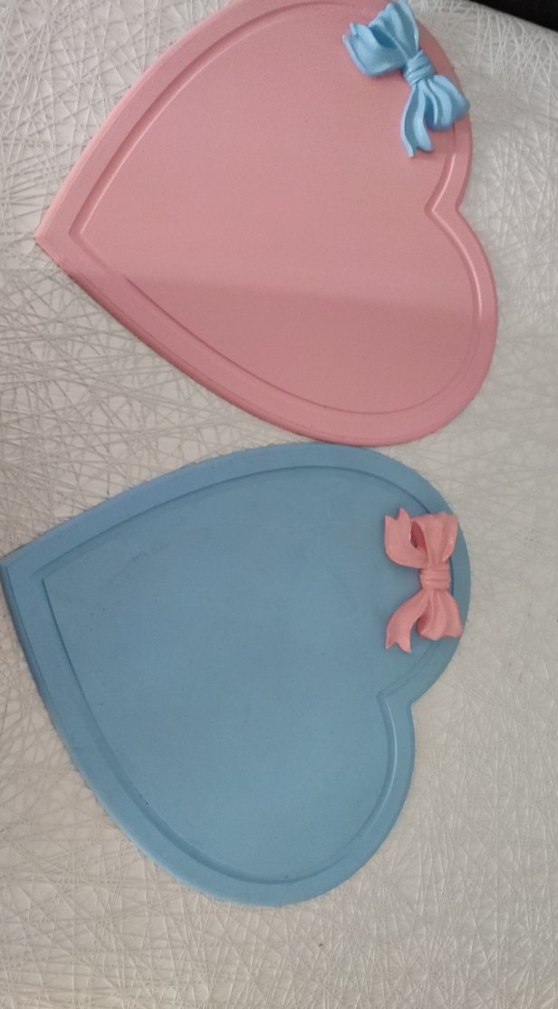 Pastel renklerde, kalp şeklinde, küçük fiyonk detaylı pembe ve mavi sunum tepsisi❤️