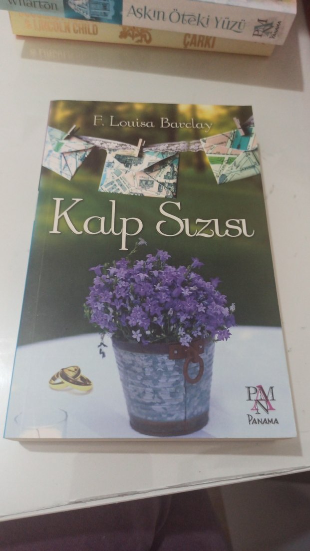 F. Louisa Barclay'nin Kalp Sızı romanı, Panama yayınevinden. Kapakta mor çiçekli saksı ve kağıt tekneler yer alıyor.