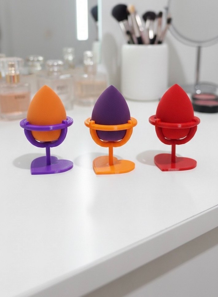 Kalp Tasarımlı Estetik Makyaj Süngeri Standı (Renkli Seçenekler)