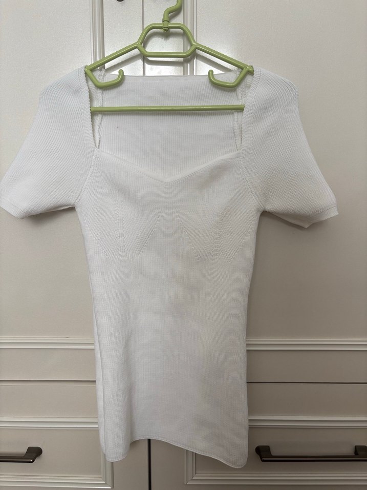 Beyaz örme triko kalp yaka bluz. Bir kere giyildi ürünün hiçbir kusuru yok