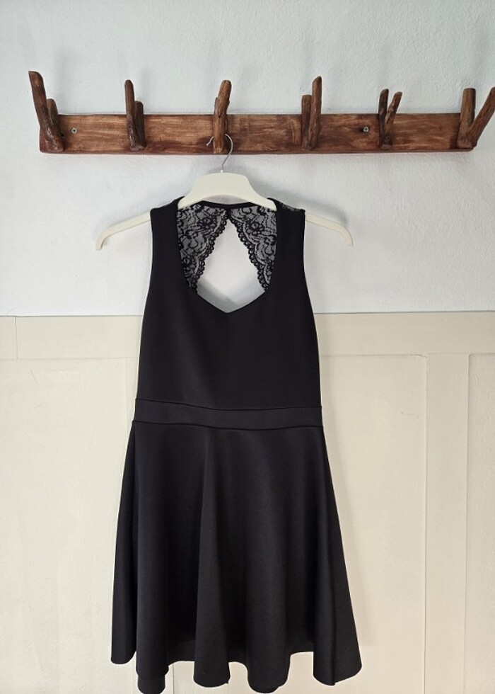 Çan elbise kap yakası dantel sırt dekoltesi mevcut