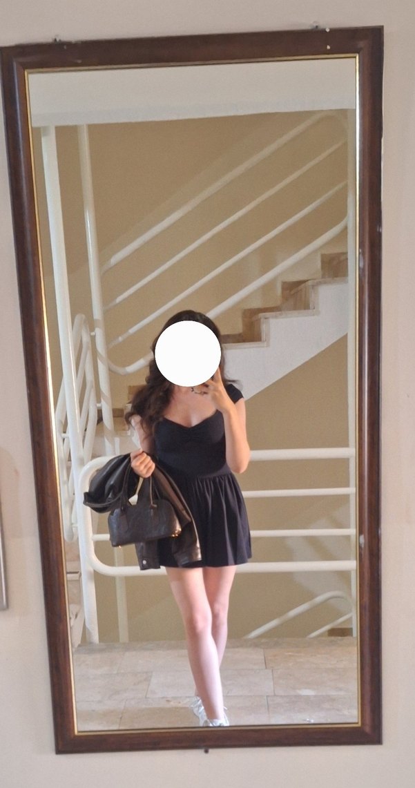 Kalp Yaka Kısa Kollu Siyah Mini Elbise