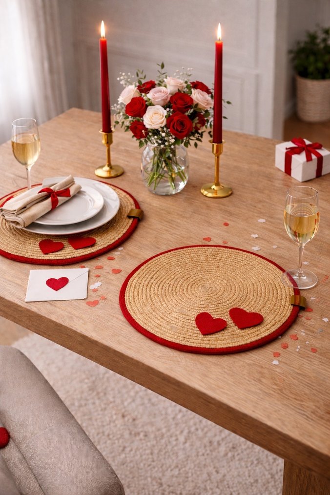 Vintage tarzda, kalp desenli sofra takımı, yemeklerinize zarif ve sıcak bir atmosfer katar.