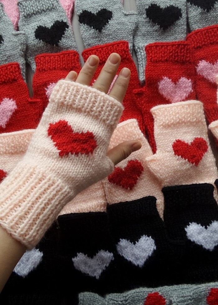 Kalp desenli, parmaksız eldiven. Sevgililer günü için ideal bir hediye seçeneği. Kaliteli iplerle, özenle örüyorum. İstenilen renkte örülür.