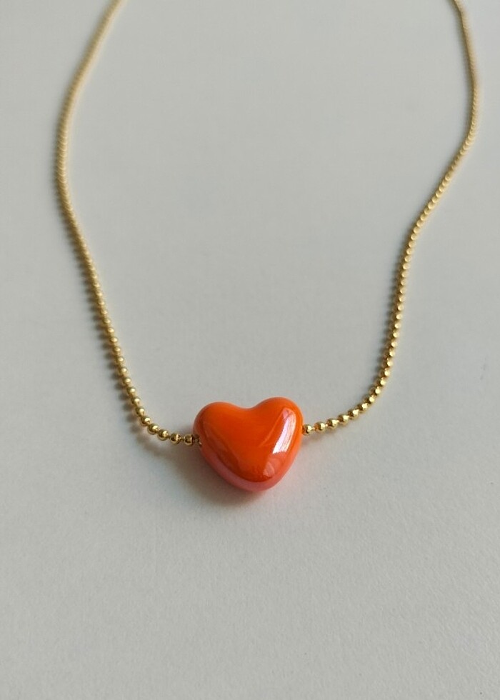 Turuncu cam elması kalpli kolye