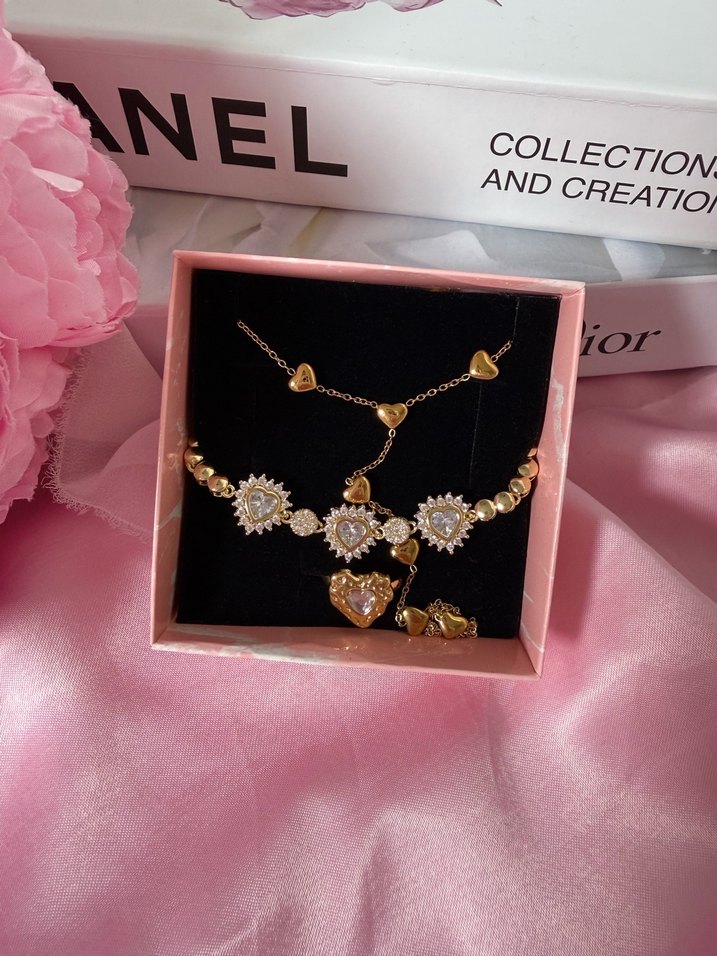 İçerisinde ; 1 adet çelik şahmeran 1 adet kalpli çelik yüzük 1 adet kalpli bileklik