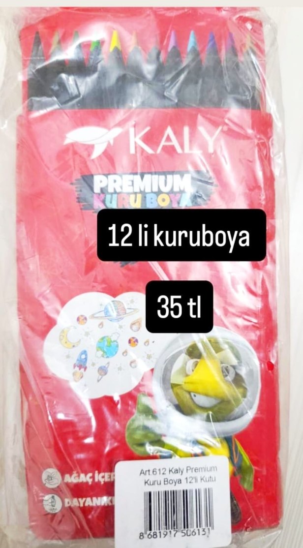 Kaly markasının 12 renkli, doğal ağaç malzemeden yapılmış premium kuruboya seti. Kırmızı kutu içinde, yumuşak ve canlı renkler sunar. Fiyatı 35 TL. ️