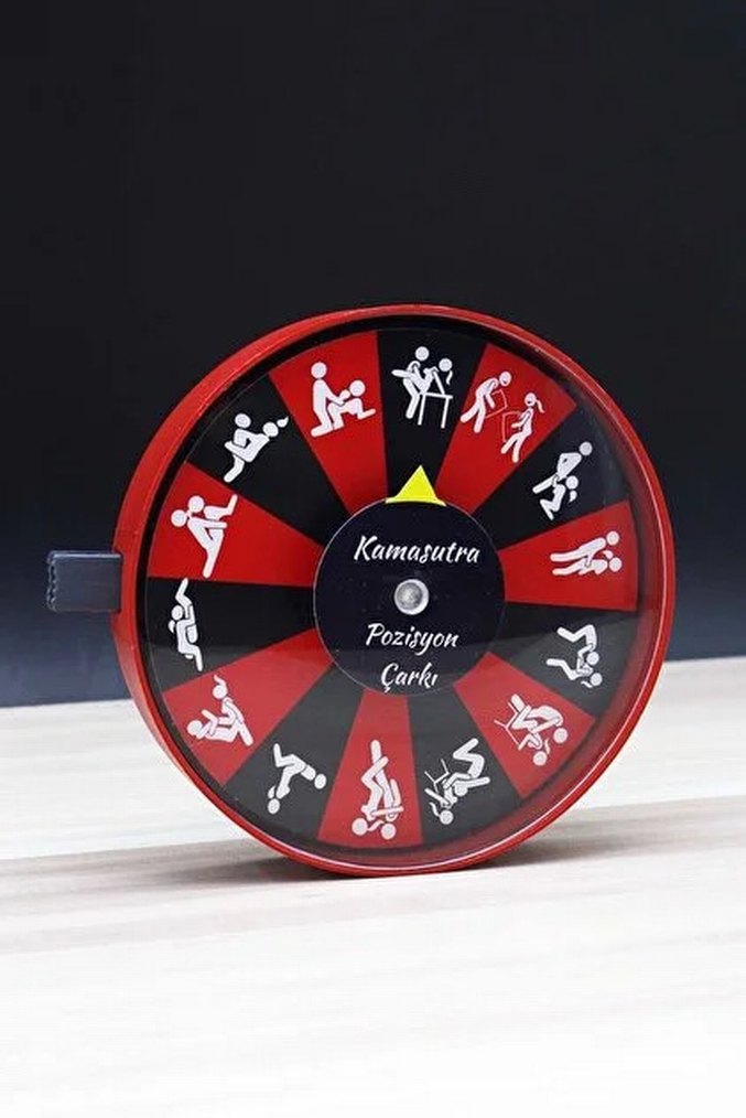 Koyu kırmızı renkte, çeşitli Kamasutra pozisyonlarını gösteren dönen çarklı oyun seti. Farklı pozisyonlar etiketlenmiştir, eğlenceli bir yetişkin oyunu.