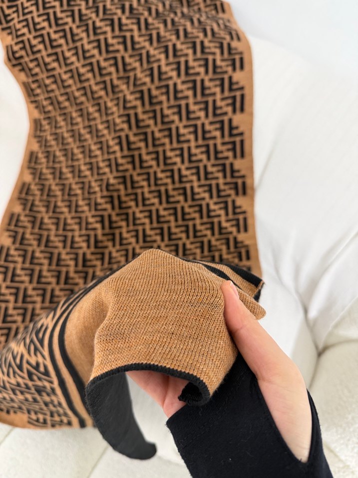 Yumuşak ve ısıya dayanıklı kumaştan yapılmış, zebra desenli koyu kamel renk fırın eldiveni.