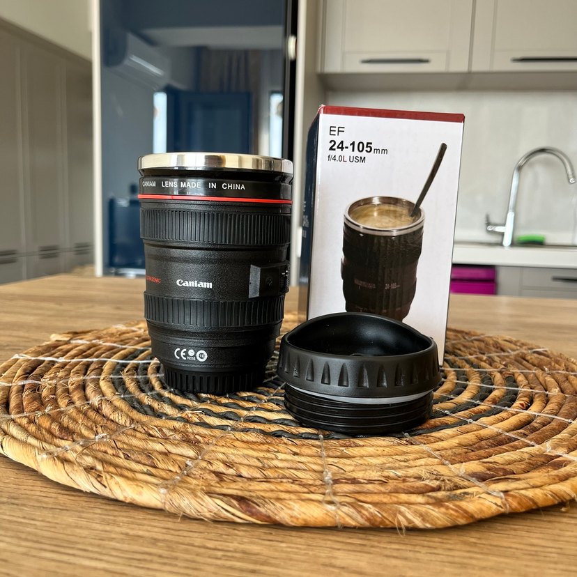 Kamera lensini andıran siyah termos bardak, detaylı işaretler ve çıkarılabilir kapak içerir. İçeceklerinizi sıcak tutar. ☕ Fotoğraf tutkunları için dekoratif hediyelik. Termos bardak. ✨Sıfır kutulu gönderilecektir. Kapanan mağazamızdan kalan sıfır ürünlerdir. Stoklu ürün elimizde birden fazla mevcuttur.