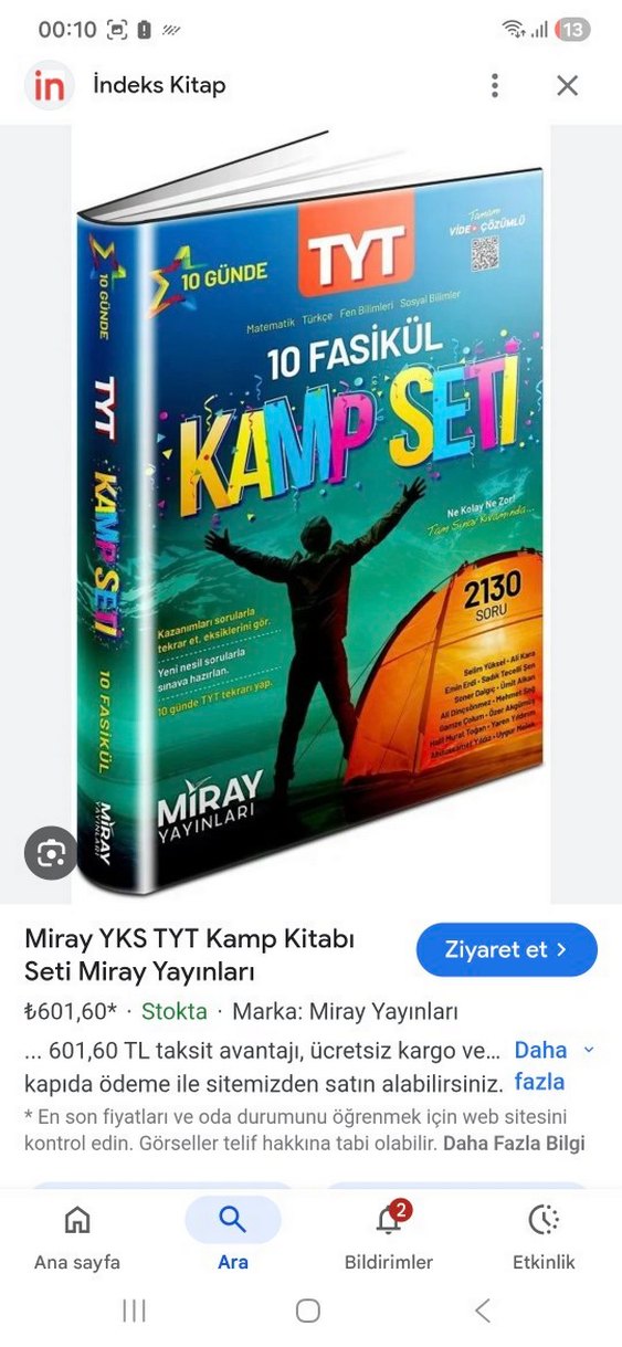 Matematik, Türkçe, Fen Bilimleri ve Sosyal Bilimler içeren, renkli 10 fasiküllük setin 2 fasükülü l eksik TYT sınavına yeni nesil sorularla hazırlanmayı sağlar. ⛺