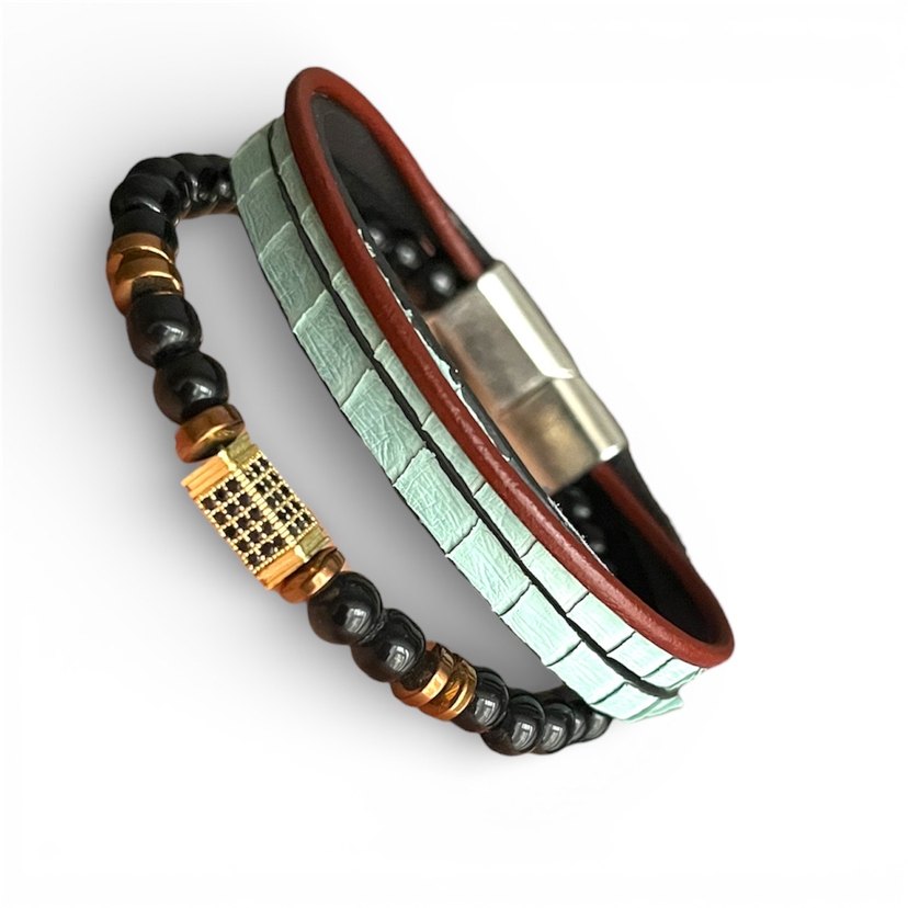 Gerçek deri ve doğal taştan yapılmış bilekliğimiz. Süper bir fiyatla. Bak araştır öyle al