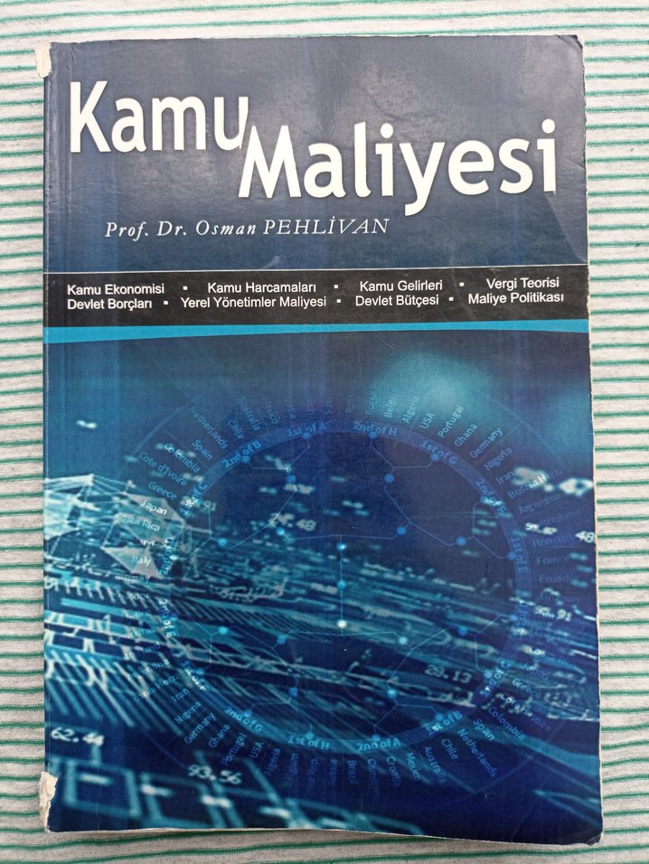 Altı çizik ve not alınmış yerleri mevcuttur. Prof. Dr. Osman Pehlivan'ın Kamu Maliyesi kitabı, kamu ekonomisi, harcamaları, gelirleri, vergi teorisi ve bütçe politikalarını içerir.