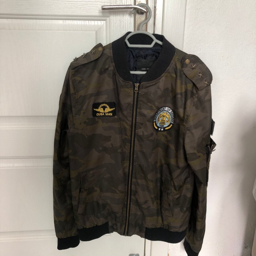 Bu kahverengi deri ceket, kamuflaj desenli, çıtçıtlı yakalı ve fermuarlı önlüdür. Bol kesim ve uzun kolludur, sokak modası için uygundur.