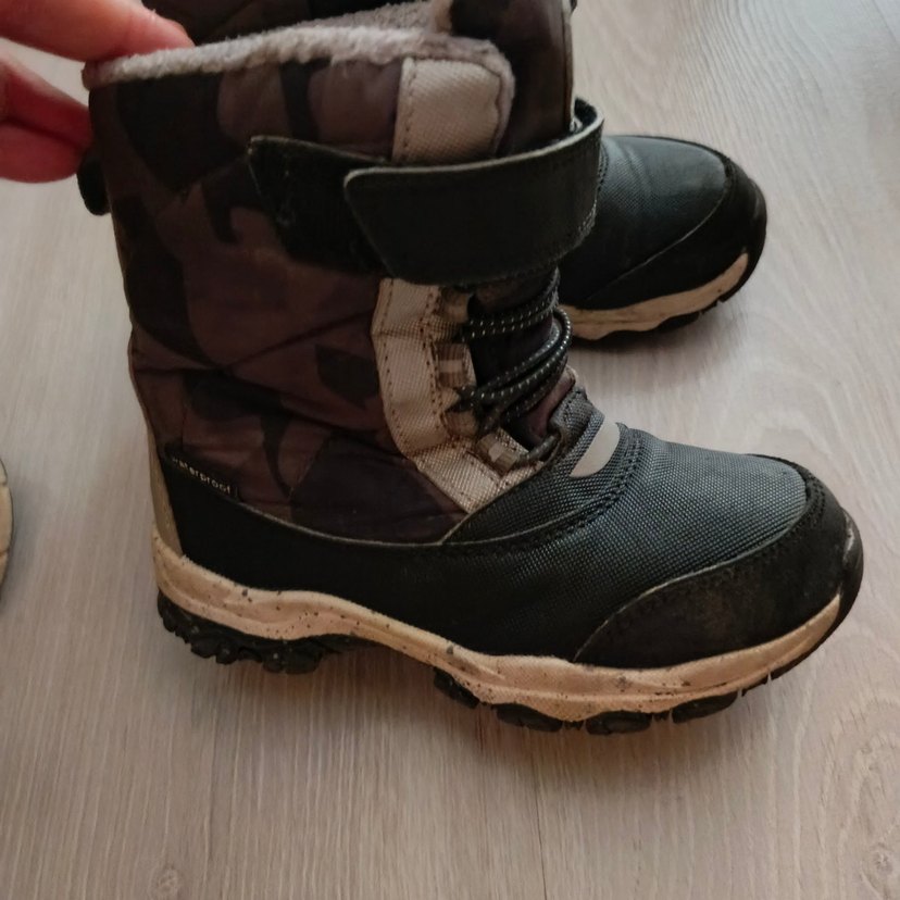 Kamuflaj desenli, kahverengi ve gri renklerde, lastik malzemeden yapılmış, cırt cırtlı erkek çocuk botu. Sokak stili ve trend görünüme uygun.