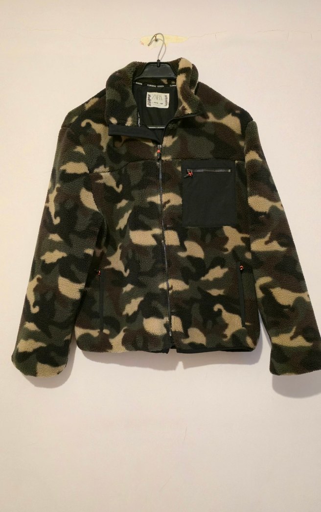 Haki kamuflaj desenli, fermuarli, uzun kollu erkek cocuk ceket. Bol kesim, midi boyda, yumuşak ve sıcak pelus kumaştan üretilmiştir. (Etiketi oglumun bilgilerinden dolayi fotografta karaladim)