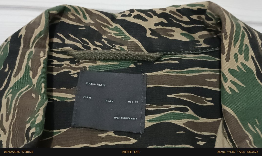 Koyu haki renkli, kamuflaj desenli erkek. hem fermuar hem çıtçıt.. oldukça kaliteli bir kumaş ve renge sahip... az kullanılmıştır.. tertemizdir... S ve M beden uyğundur...