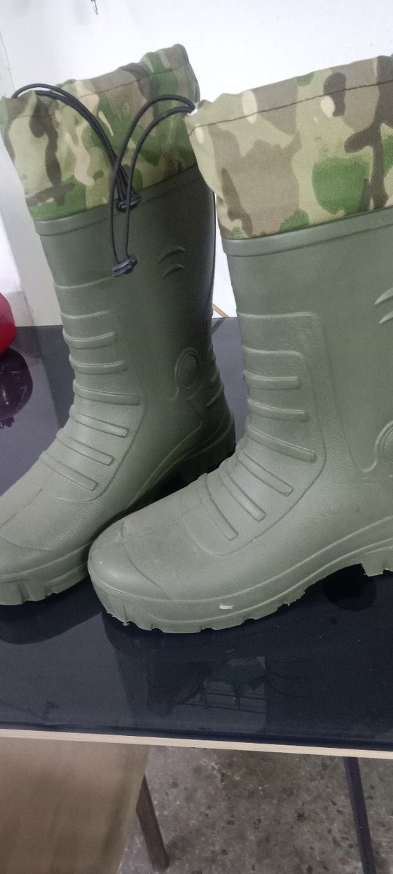 Kamuflaj desenli, kemer detaylı, su geçirmez lastik çizme, erkek için şık ve kullanışlıdır.